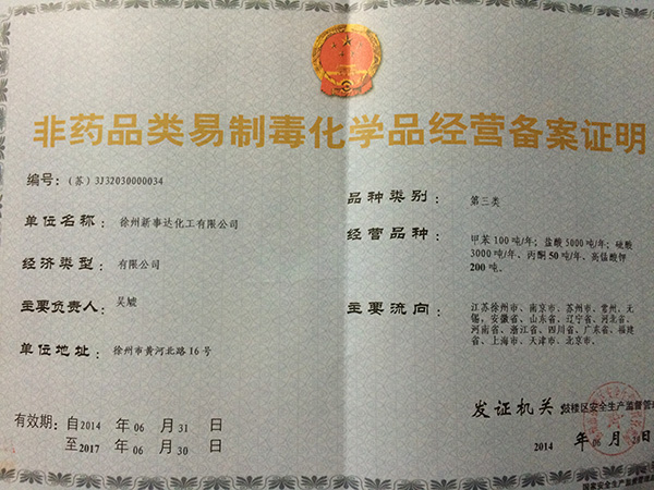 非藥品類易制毒化學(xué)品經(jīng)營備案證明